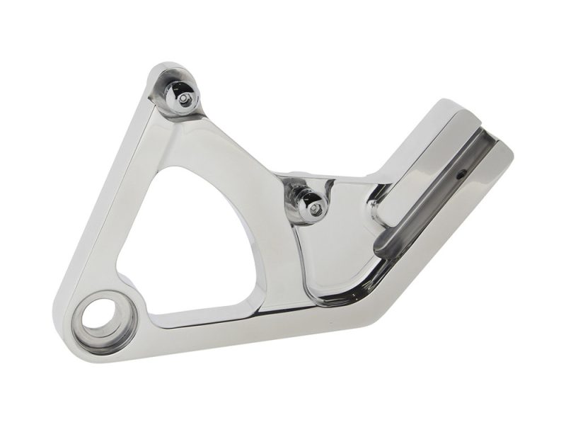 Right Hand Rear Caliper Mount - Polished. Fits 4Spd Big Twin 1973-1983, 11.5in. Disc Rotor & when using Performance Machine 125x4R Caliper.