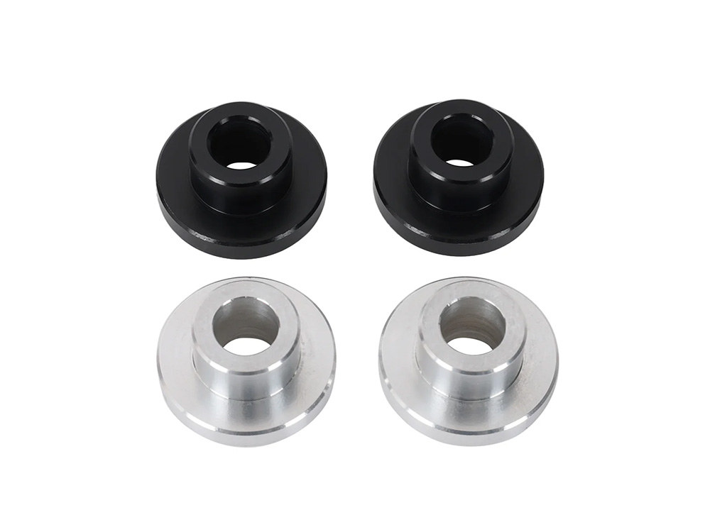 Eliminate the slop of your risers with our solid bushing kit. This kit includes two black bushing, & two silver bushing. Allowing you to choose which color you want to see whenever you look down.