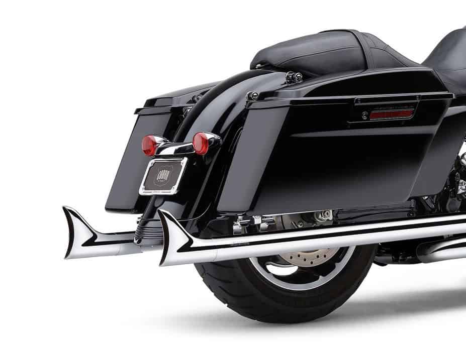 Speedster Dual Exhaust – Chrome with Chrome Fishtail Tips. Fits Touring 2017up.