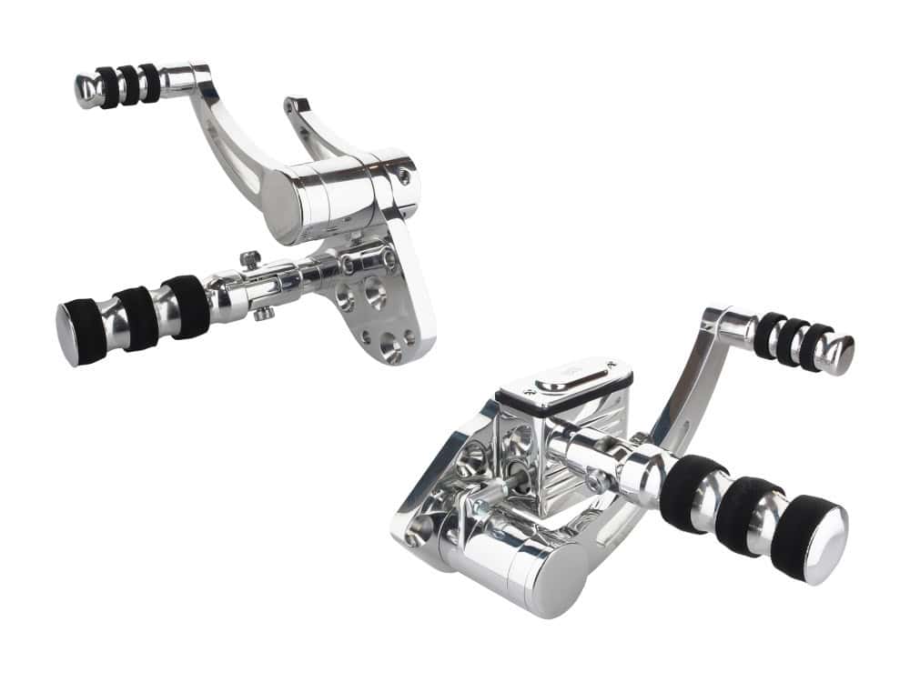 Standard Length Forward Controls with Folding Rubber Inlay Pegs - Chrome.Fits Softail 1984-1999 & 4Spd Big Twin 1936-1986.