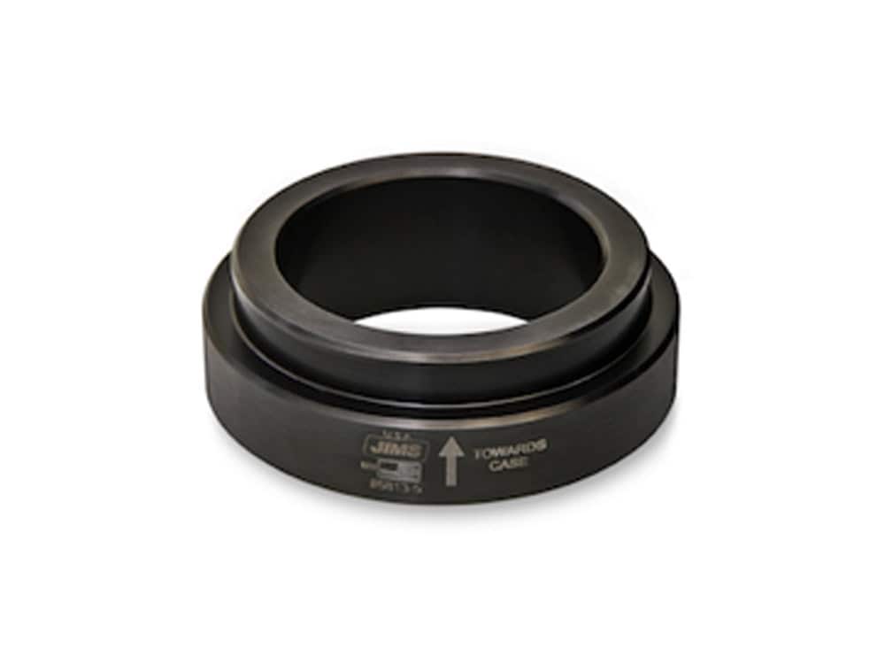 This adapter is a simple time and money saver when installing the main bearing on a Milwaukee Eight left side crankcase. Simply position this adapter on top of the bearing support on the press table. When this adapter is used in conjunction with the JIMS # JM-5813 main bearing tool, or OE tool, the stator can remain attached to the left side case during bearing installation. The technician will save the time of removing and installing the stator. The adapter has been designed with added clearanc e for the stator screws, which are one time use only screws. It will also guarantee that the case plug seal of the stator is not compromised resulting in a leak. Saves time, saves screws, saves seal and will avoid a costly stator replacement. This adapter is manufactured from quality 1144 steel, plated in black oxide for corrosion resistance and guaranteed for life.