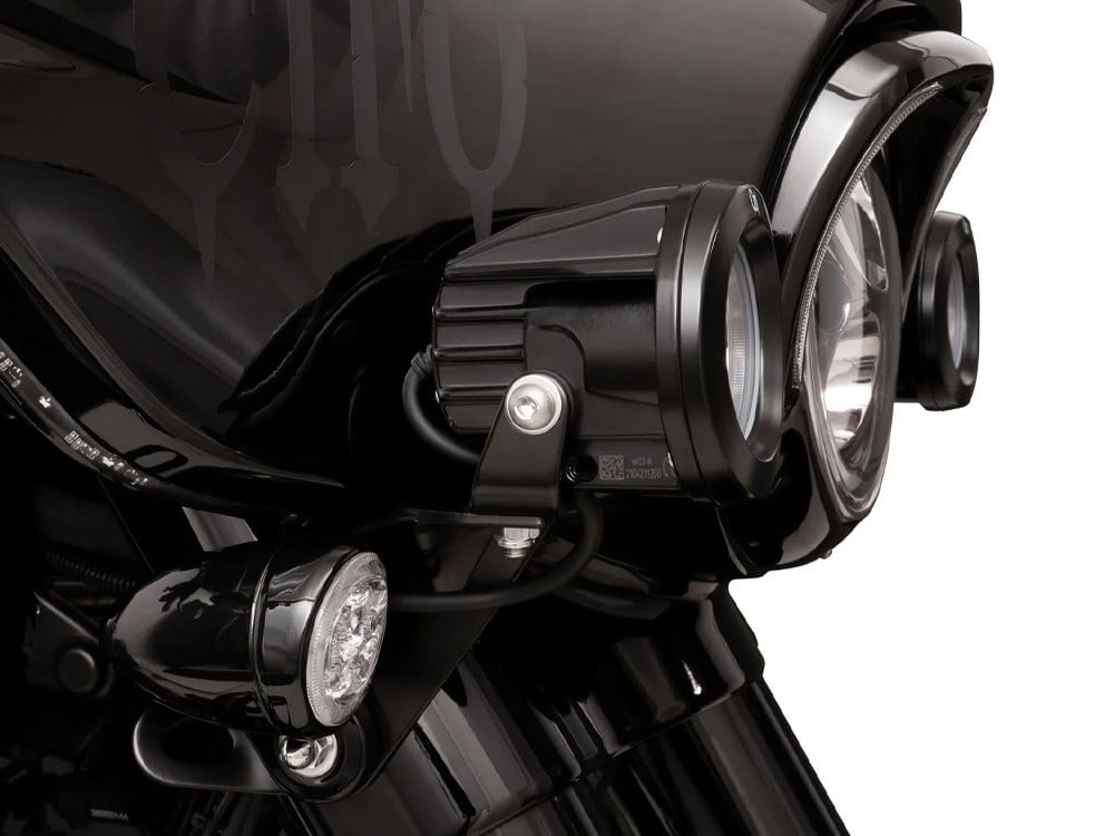 The Street Glide/Electra Glide kit includes engineered brackets to allow easy bolt-on installation with adjustability that allows lights to angle up/down and side to side.