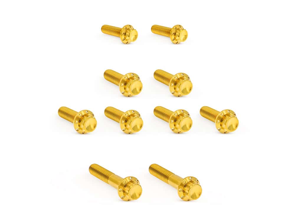 * 12-point transmission side cover bolt kits that are CNC machined from solid Titanium