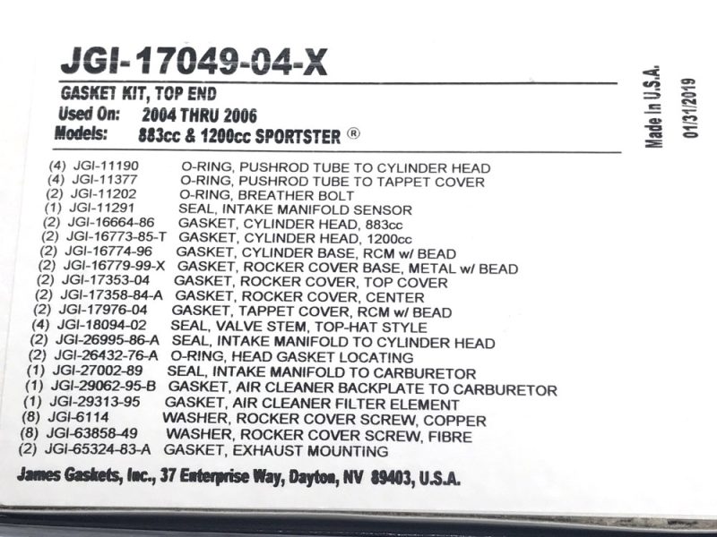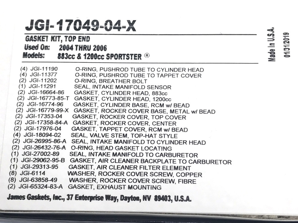 Top End Gasket Kit. Fits Sportster 2004-2006 with 883cc or 1200cc Engines.