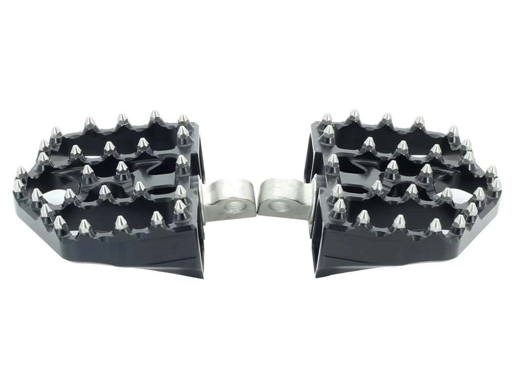 * Foot pegs have our exclusive pitch adjustment hardware that allows you to change the angle of the foot pegs to the riding position preferred by the rider.