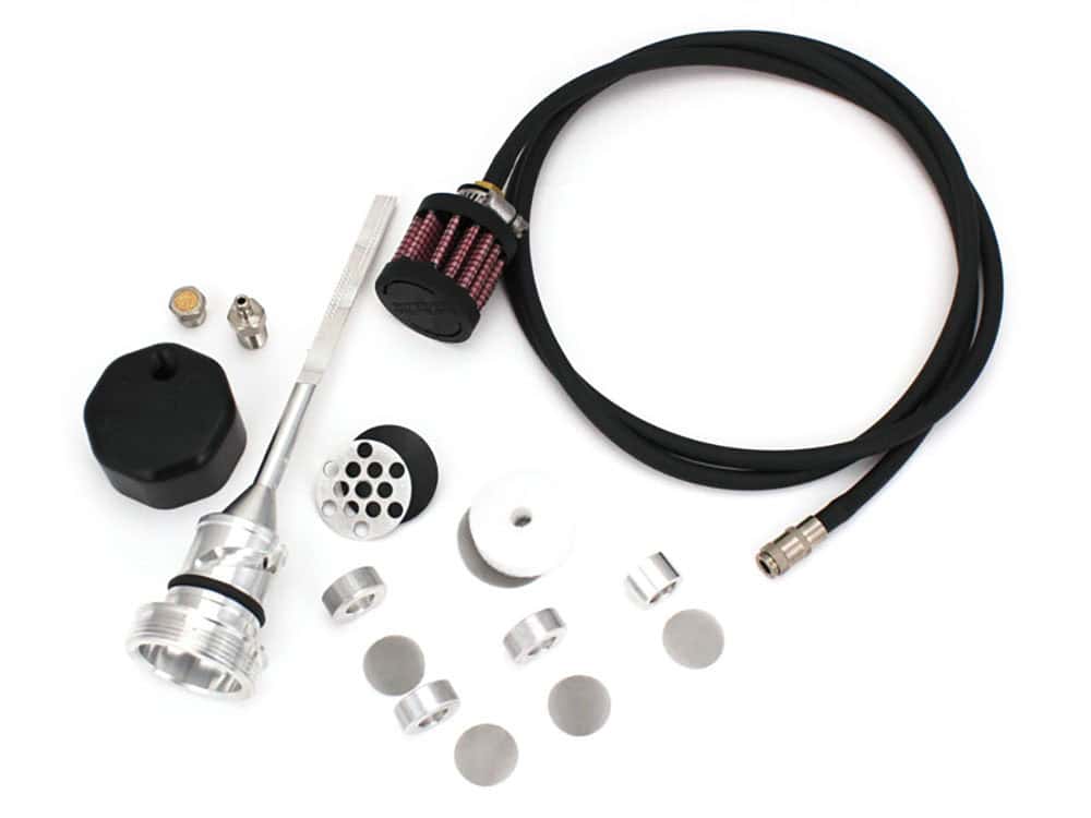 * The Feuling dipstick vents excessive pressure from the oil tank through a breather system consisting of a filter element and umbrella valve.