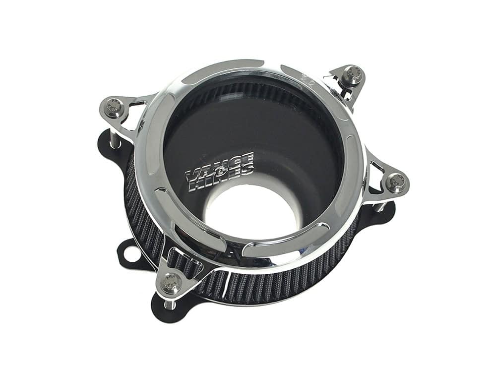 Catch a glimpse of your intake’s inner workings with the VO2 Insight. Housed in a precision-machined billet aluminum cover assembled with stainless racing-grade ARP hardware, the VO2 Insight features an innovative filter design combining our high-flow oiled-media with a clear polycarbonate top embossed with the Vance & Hines logo. Inside, the VO2 Insight uses our new ‘ patent pending’ Force™ Velocity Stack to accelerate air into your engine.