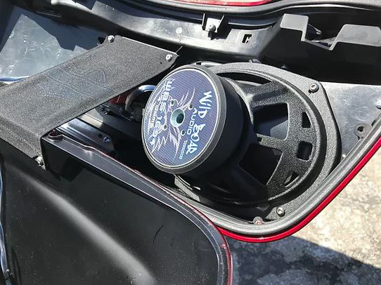 * 600 Watt amp with R.E.M.I.T. mounts on top of radio inside fairing